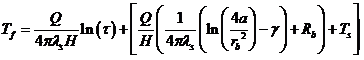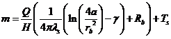 根据线源模型,地埋管换热器进出口平均温度与时间变化关系式为: